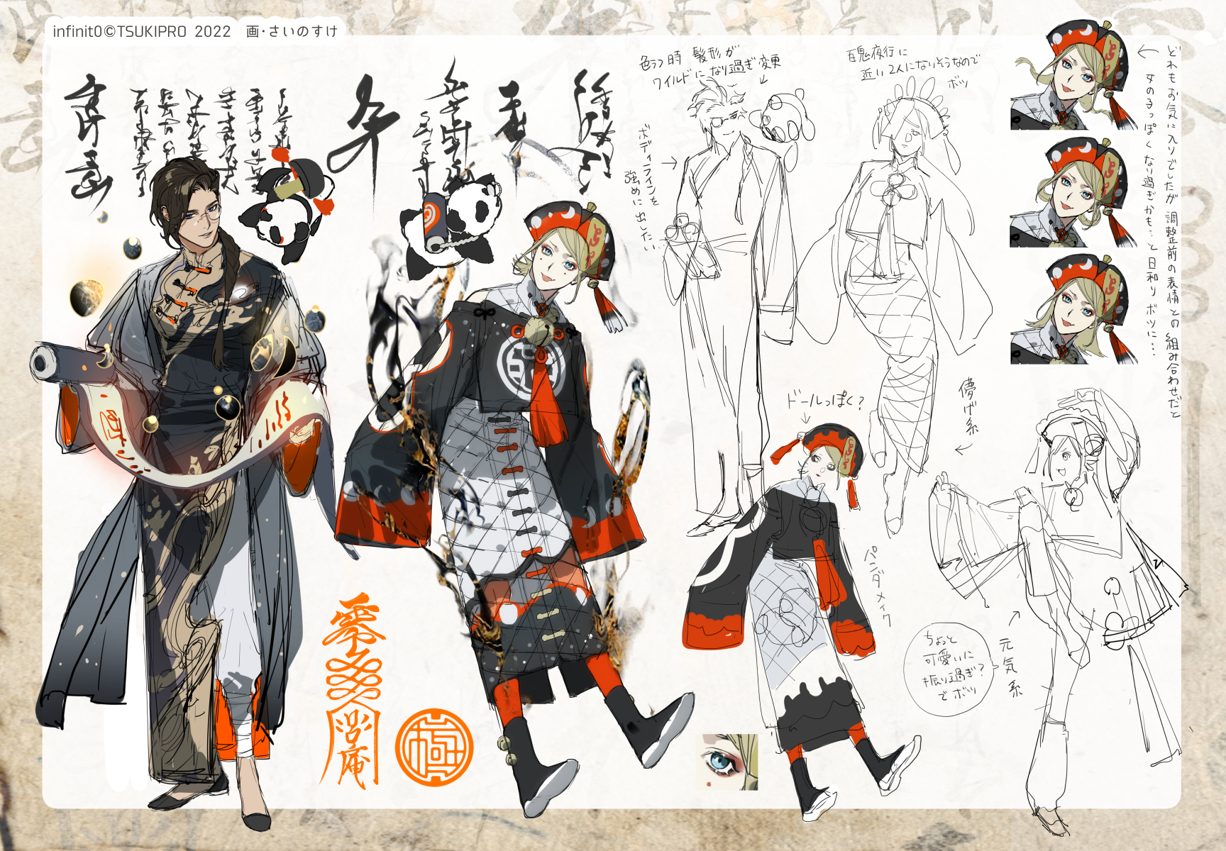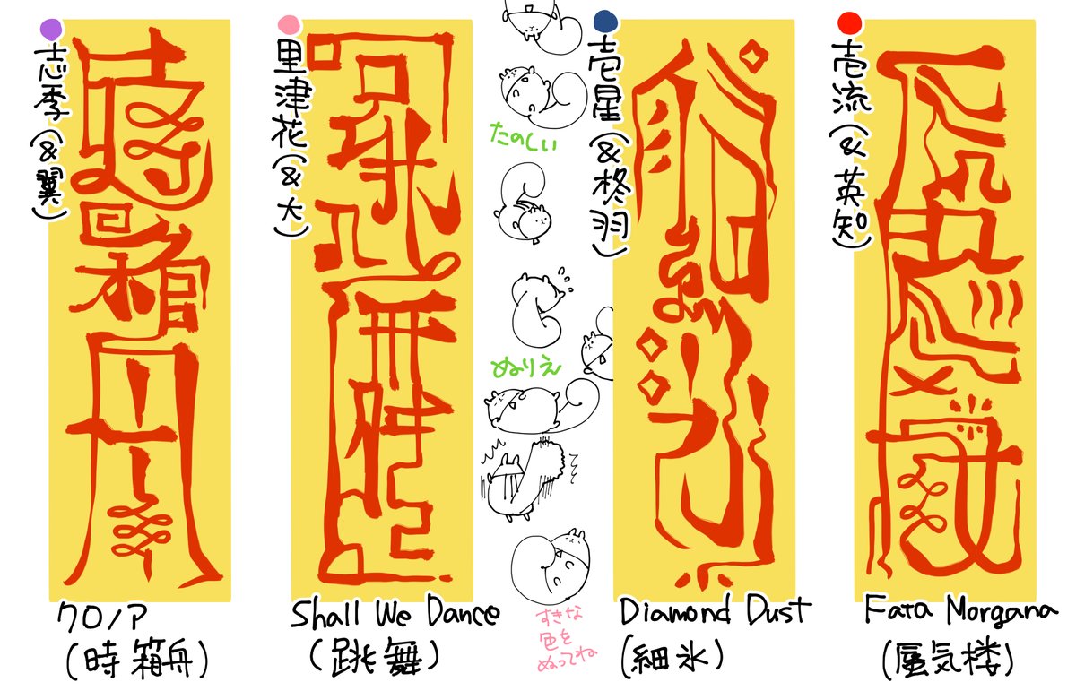 카케루 「이에 근거해 츠우 일동(ツキメン/츠키우타 맨즈? 멤버즈?)은 팜프에서는 신규 일러스트에 초기 설정을. 신작 일러스트에 각자 금란으로의 길(金蘭への道)이 대강 게재되어 있습니다!」