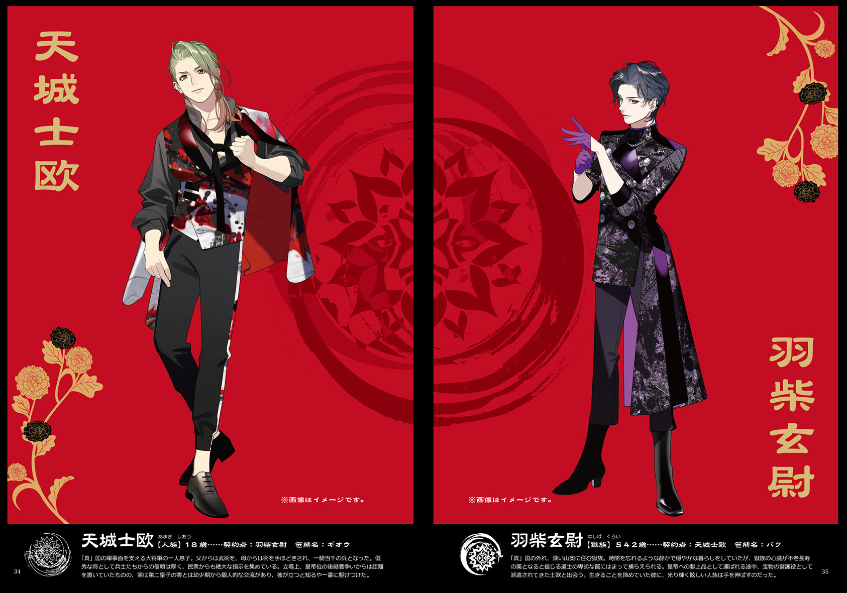 옥족=어둠 속에서 보이도록, 인족=빛 속에서 보이도록 하는 의미와, 하얀 어둠의 슌과, 검은 빛의 하지메 이미지였어」
