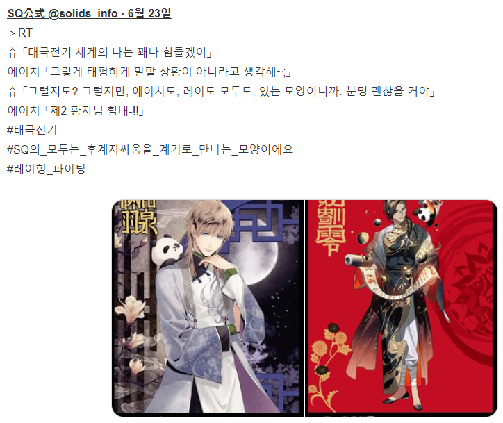 #태극전기 #슌과_하지메는_대칭적인_포즈구나