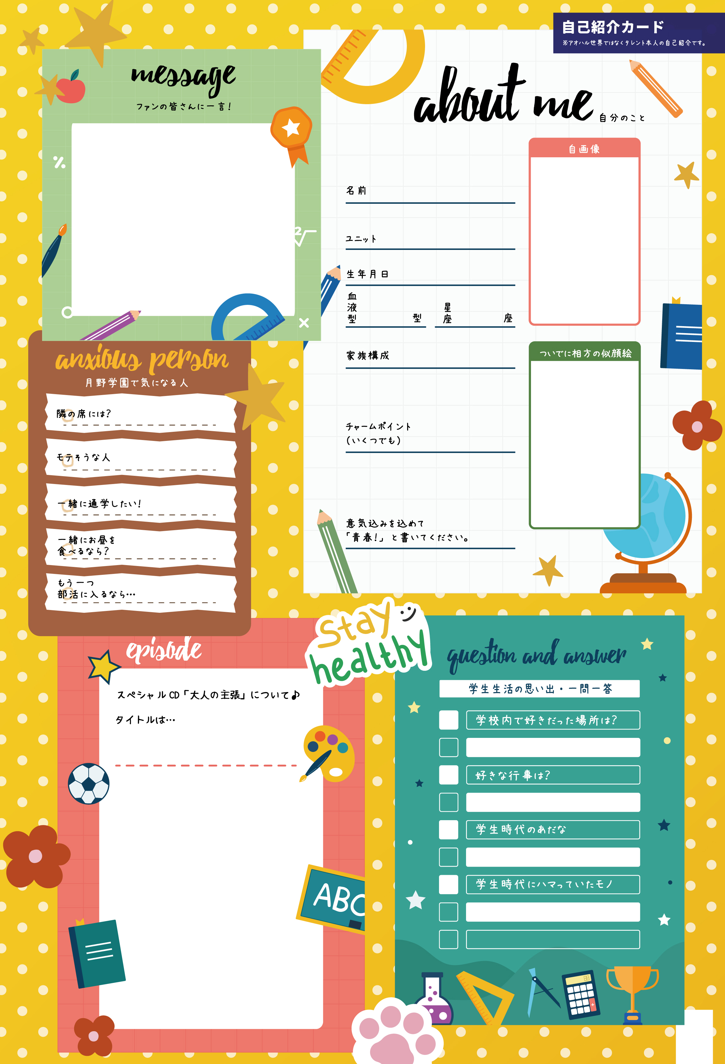 隼「°˖✧◝(⁰▿⁰)◜✧˖°<今回の個人ページはサイン帳(って知ってる?僕、初めてだった)風で、皆がそれぞれ青春とか学校にまつわる思い出とか、相方さんの似顔絵とか、あだ名とか、色んな質問に答えてるんだよ~✏️📔