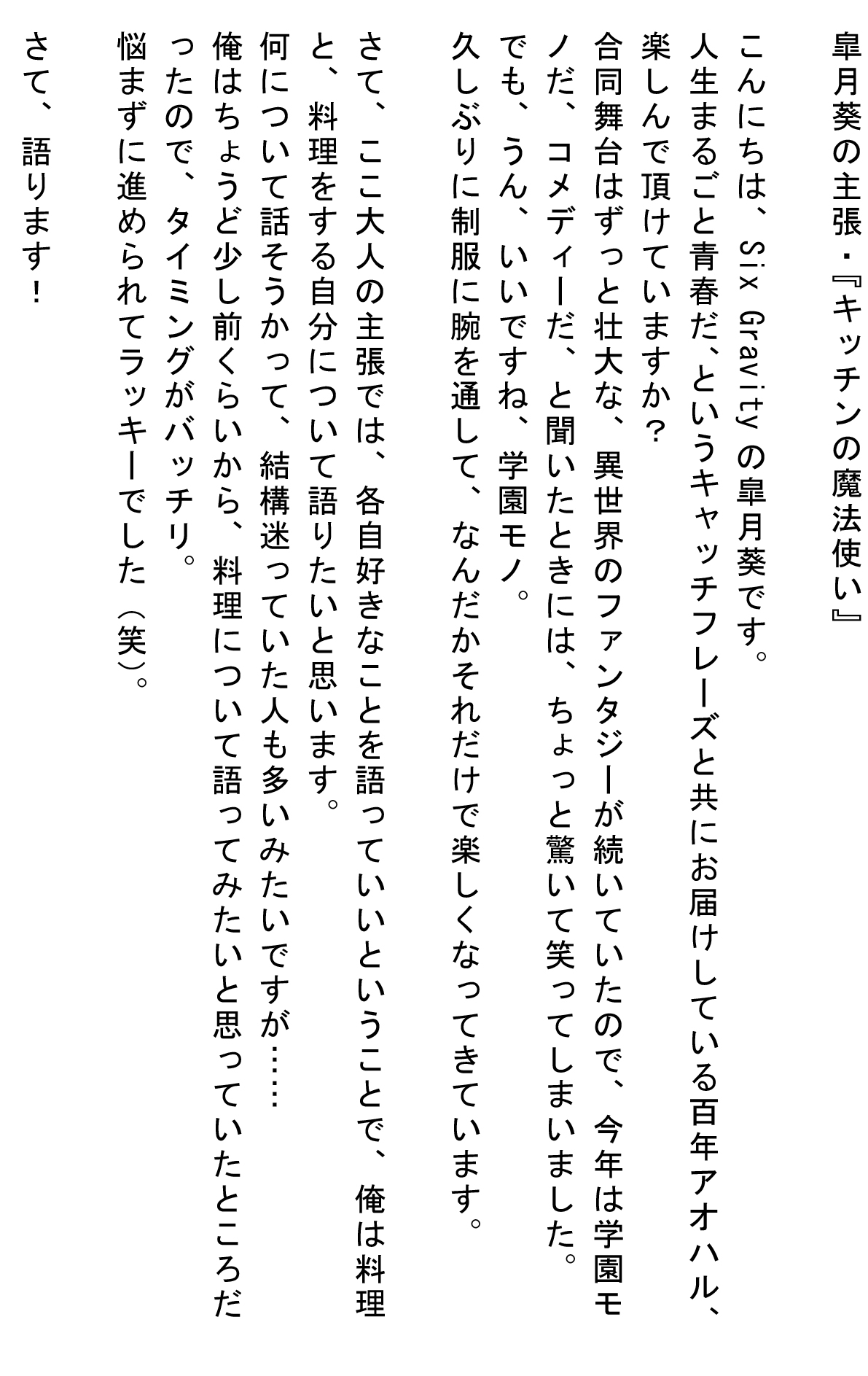 翼「俺たちも、全員当日初見にしようって決めてるんだよね…。どんなモンが仕上がってるか、阿鼻叫喚になってたら笑ってね(笑)」
