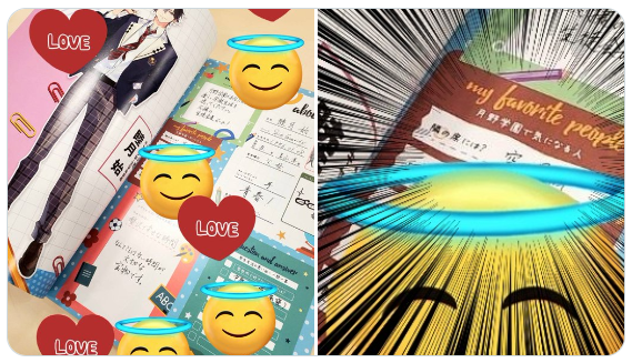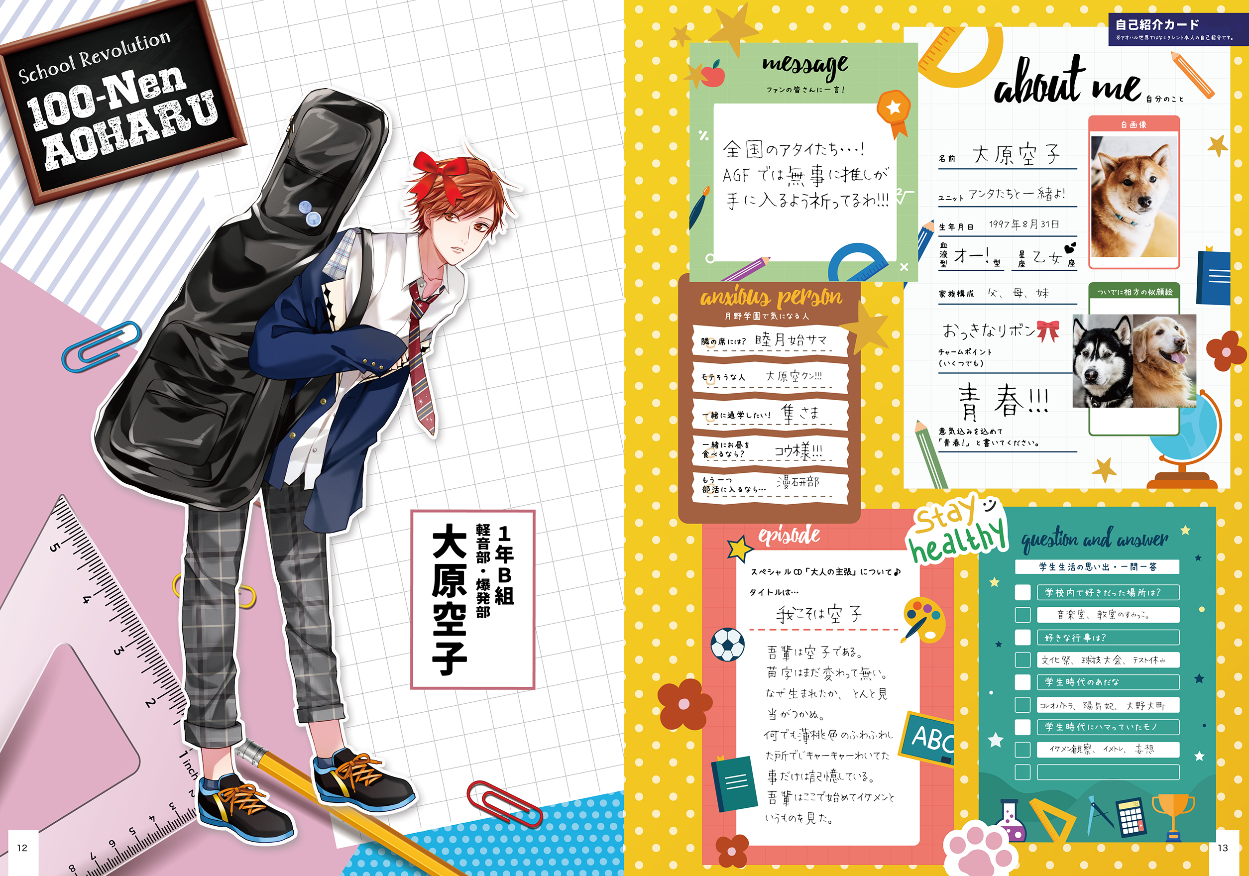 슌 「°˖✧◝(⁰▿⁰)◜✧˖°<이번 개인 페이지는 사인북(이라고 알아? 나, 처음이었어) 풍으로, 모두가 각자 청춘과 학교에 연관된 추억이나, 파트너의 초상화라거나, 별명이라거나, 여러 질문에 답하고 있어~✏️📔